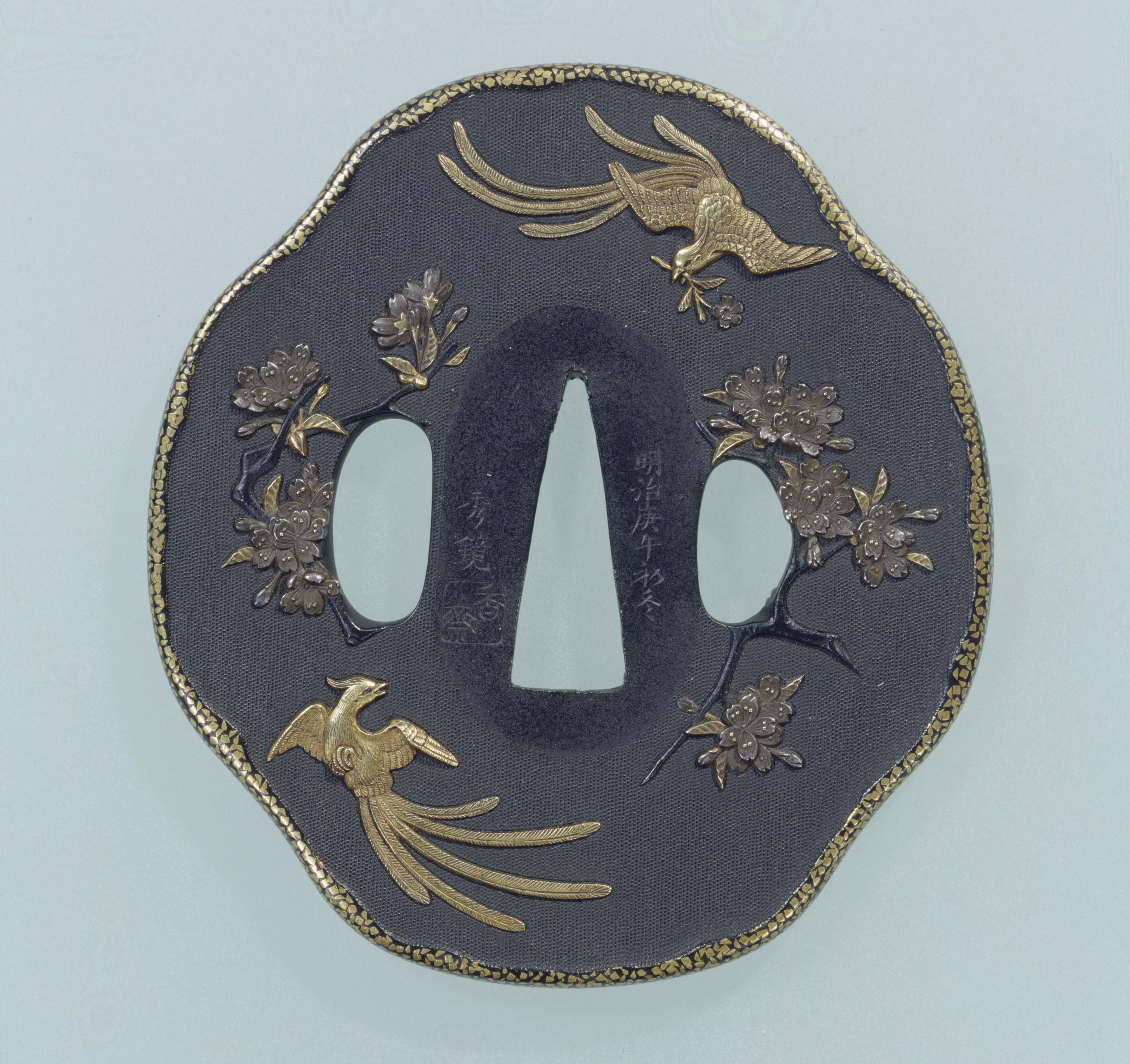 3. 桜花山鵲図鐔(おうかさんじゃくずつば) 塚田秀鏡 明治3年(1870)