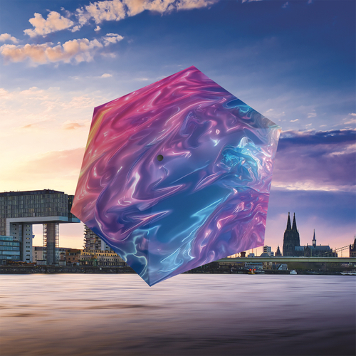 ライン川のほとりから見る現代建築と世界遺産ケルン大聖堂。