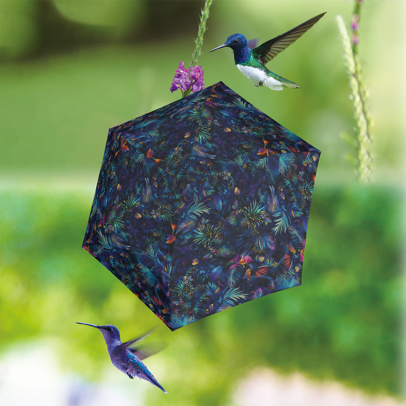 明るいデザインの傘は、使う人や行き交う人たちを笑顔にします。
