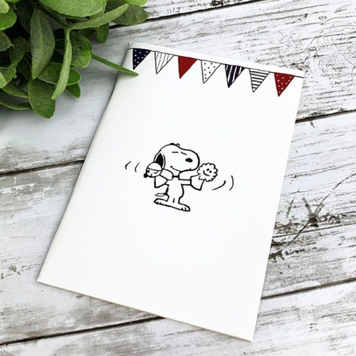 こんなにキュートなノートが新登場しています。スヌーピーはもちろんですが、上に描かれたフラッグもオシャレですよね。A6サイズなので、コンパクトでバッグにもスッポリ納まります。省スペースでの作業時にも邪魔になりませんね。