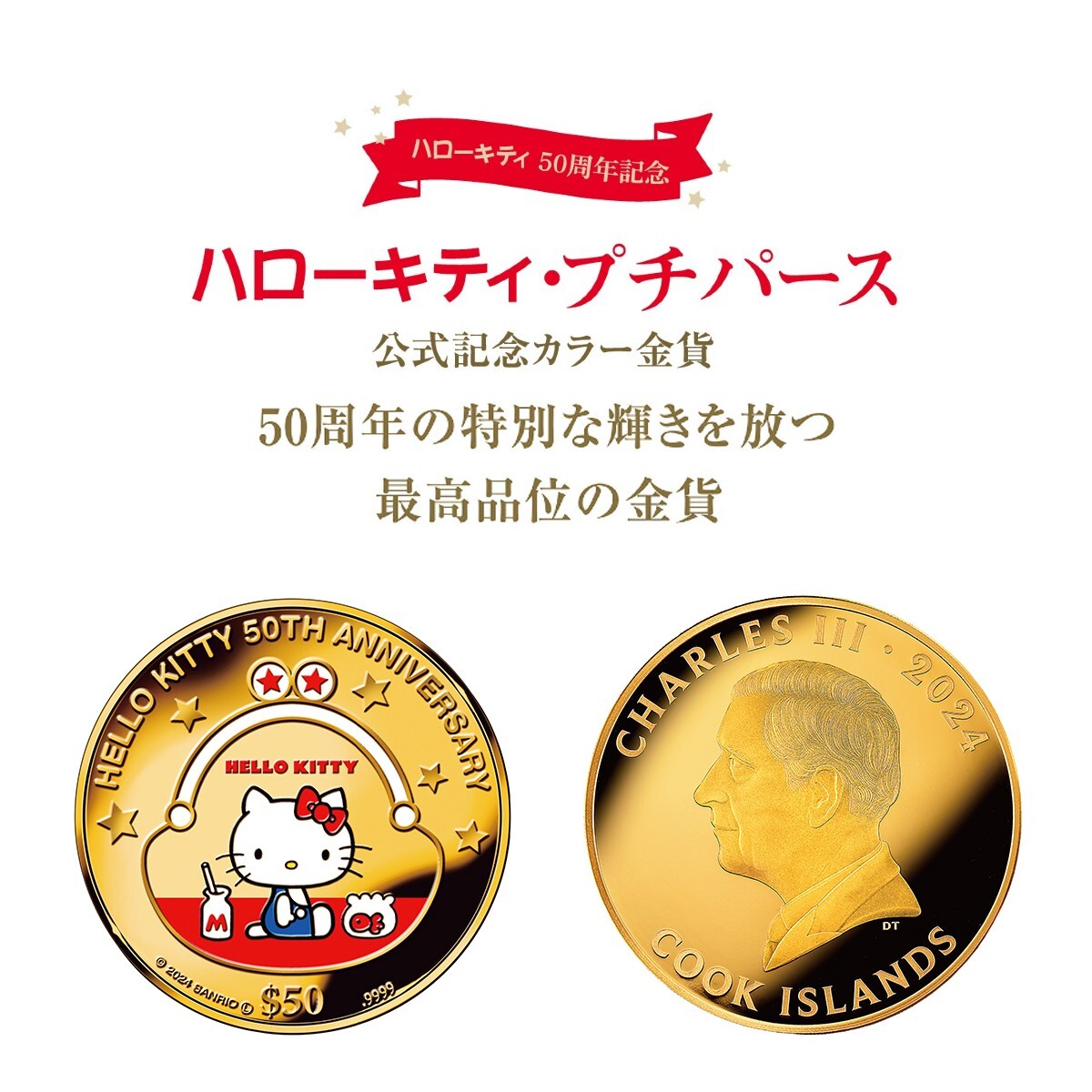 ハローキティ始まりのストーリーを、永遠に輝く純金に。 ハローキティ・プチパース 公式記念カラー金貨、新発売!