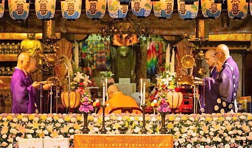 ・厳粛な空間で、僧侶による法要次第の披露