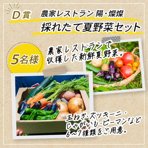【D賞】農家レストラン 陽・燦燦 採れたて夏野菜セット(5名様)