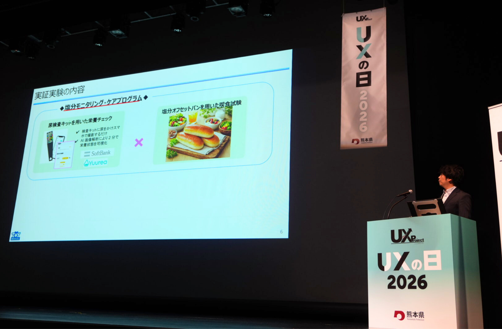 トイメディカル株式会社(本社:熊本県熊本市、代表取締役社長 竹下英徳)は、2026年2月19日、熊本城ホール(熊本市中央区)にて開催された「UXプロジェクト等 成果報告会」に登壇し、独自技術「塩分オフセット」を用いた実証実験の成果を報告いたしました。