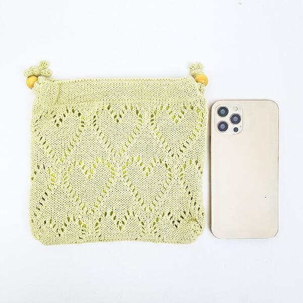 ポイントはこのハート模様の透かし編みです。この透かし感が特別感ありで、程よい抜け感が出て大人可愛いデザインではないでしょうか?サイズ:18cm×18cm×2cm 素材:ポリエステル、アクリル