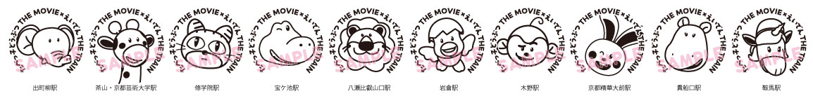 「たべっ子どうぶつ THE MOVIE」イラストを使用したコラボ駅名標を掲出します。叡山電車の沿線を巡りながら、コラボ駅名標巡りをお楽しみください。