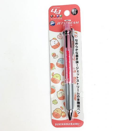 子供から大人までの沢山の人達に愛されているすみっコぐらしの文房具が登場!ペン1本で5つの機能☆黒・赤・青・緑の4色ボールペン&シャープペンシル0.5の機能があります。ボールペンはなめらかな書き味のジェットストリームインク♪大人カジュアルでシンプルなデザインですので、ご年齢問わずお使いいただけます。プレゼントとしても喜ばれると思います♪
