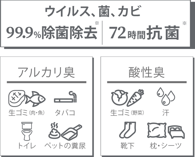※1すべてのウイルス、菌、カビ、悪臭に効果があるわけではありません。