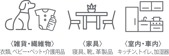 生活の中の臭いは、汗、トイレやペットの糞尿、タバコなどの「アルカリ臭」と、生ゴミなどの「酸性臭」に分けられます。