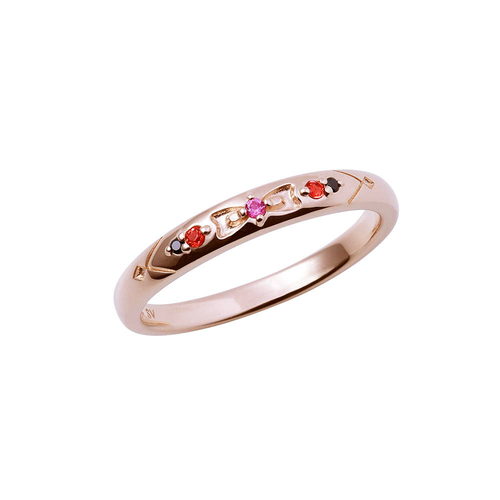 3つのリボンにカラーストーンをセット。内側には名前刻印を施しました。