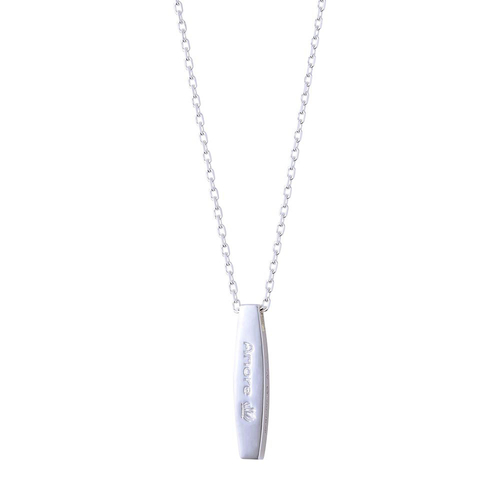 バータイプのトップの表面には、ひびきをイメージしたエレガントな模様を取り込みカラーストーンをセット。裏面には「Amore」の刻印を施しました。