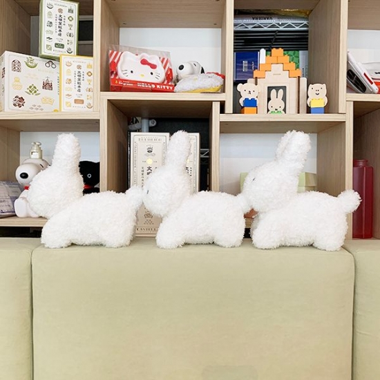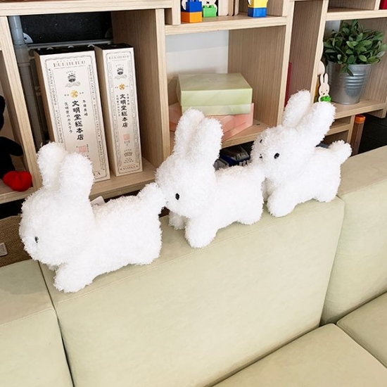 こんにちは♫こちらのコーナーでは、最新登場のアイテムをなるべく速く、お届けしています。今回はもこもこうさぎのぬいぐるみ。
