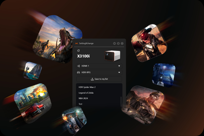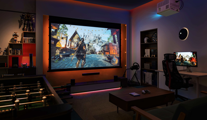 ハイエンドモデルの「X3100i」は、3,300ANSIルーメンの高輝度、DCI-P3を100%カバーする広色域で、リビングなどの明るい部屋でも快適なゲームプレイが可能です。ゲームモードは従来機「X3000i」のFPS/RPG/スポーツゲームモードに加え、新たにレーシングゲームモードが追加され、より多様なジャンルのゲームに最適な映像とサウンドでゲームへの没入感をもたらします。垂直レンズシフト機能を備えており、設置の柔軟性が向上したため、リビングなどの広いお部屋での大画面プレイに最適です。