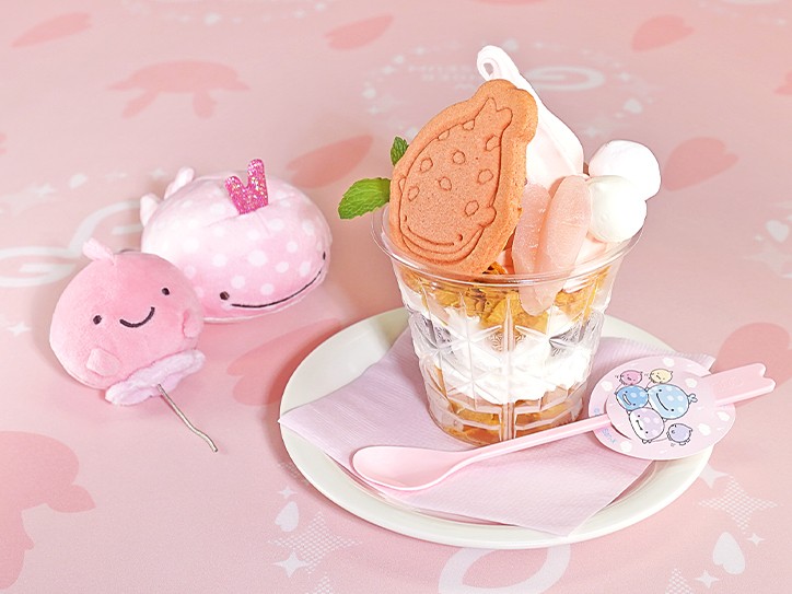 じんべえさんの10周年記念テーマ「じんべえさんとふうせんうお」をとコラボデザイン「岩下の新生姜じんべえさん」をモチーフにしたドリンク、パフェ、フードが登場。じんべえさんコラボメニューをご注文のお客さまには、オリジナルデザインのコースター(紙製)を1品につき1枚プレゼントいたします。
