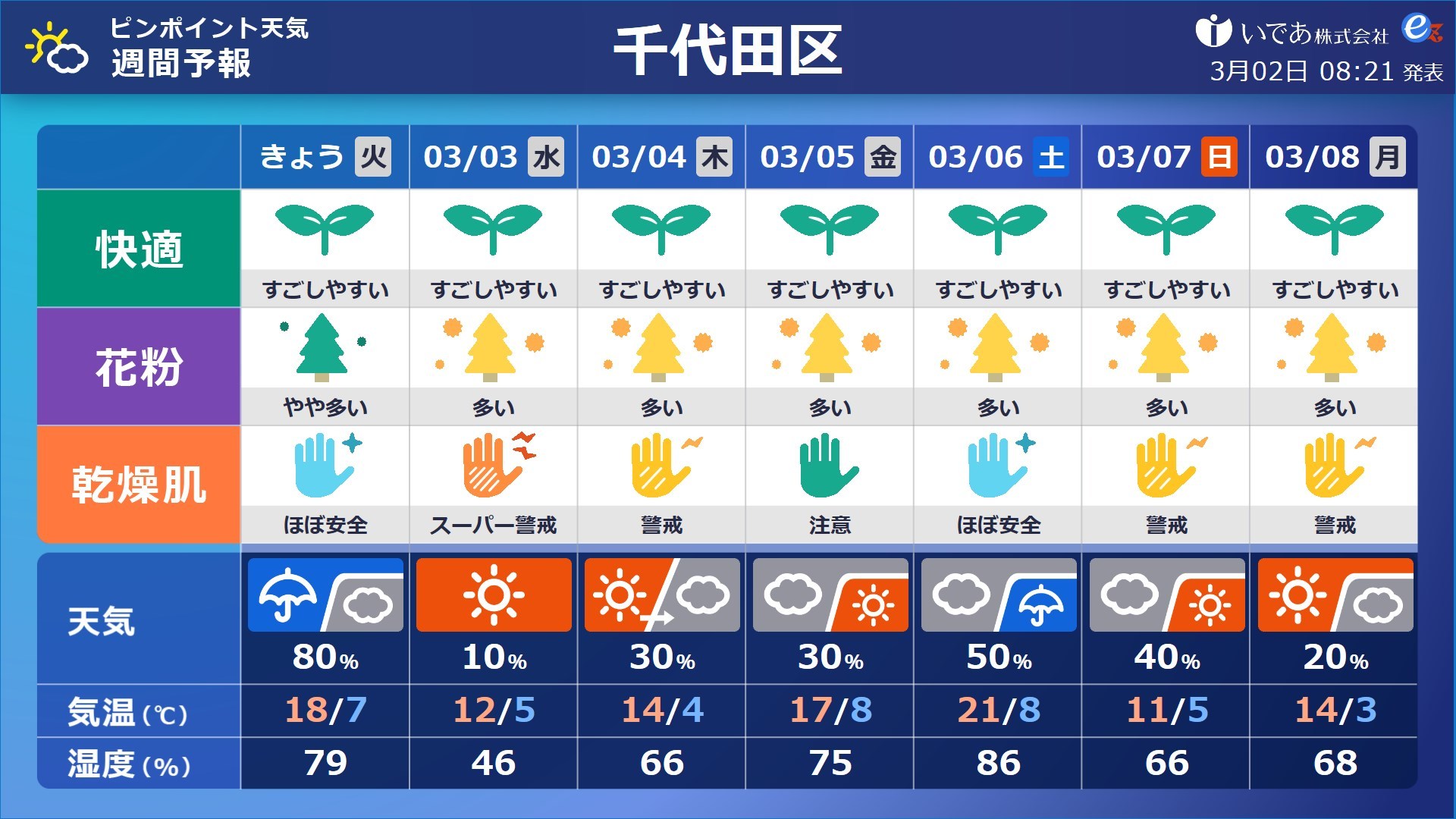 ・市区町村単位のピンポイント天気、健康生活予報(週間)