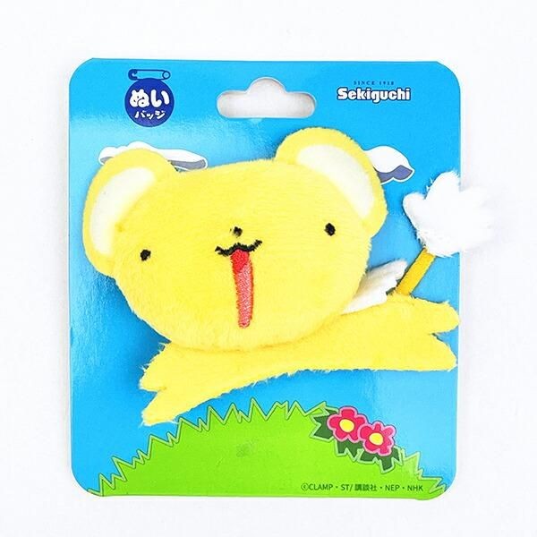 こちらは、カードキャプターさくら ケロちゃん ぬいバッジです。ぬいバッチなので、帽子やお洋服やカバンなどのアクセントに付けることができます。お顔は刺しゅうデザインでなんとも愛らしいみためです。安全カバー付きなので、小さいお子様のカバンや帽子の目印としてもお使いいただけそうです。サイズ:5cm×7.5cm×1.5cm 素材:ポリエステル