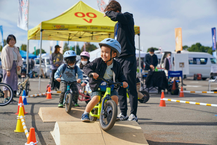 スリル満点のバンジートランポリンやみんな大好きふわふわ遊具、巨大ダンボール迷路、スーパーボールすくい、スラックライン、キッズバイク試乗体験といったキッズ向けアクティビティが充実。親御さんが見学している間もお子さまを飽きさせることなく、家族みんなでイベントを楽しめます。