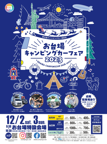 お台場キャンピングカーフェア実行委員会(東京都中央区<株式会社八重洲出版内>)は、2023年12月2日(土)~3日(日)に東京・お台場の特設会場にて『お台場キャンピングカーフェア2023』を開催します。