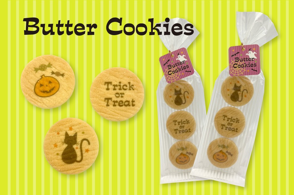 デザイン:かぼちゃ、おばけ、コウモリ、お墓(フタのラベル)