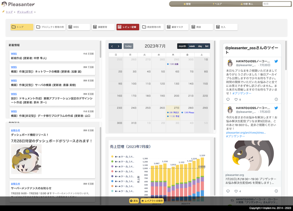 現状は一部システムの移行とテストにとどまっておりますが将来的にはPleasanter一本化も視野に入れております。