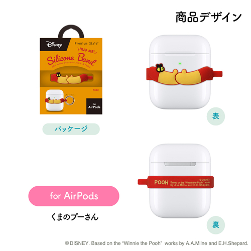 かわいいディズニーキャラクターデザインのAirPodsやAirPods Proの本体を活かしたシリコンバンドです。本体をギュッとハグしたデザインで紛失・落下から守ります。持ち運びに便利なカラビナリング付きで鞄やベルトに取り付けも簡単です。バンドを装着したままケーブルやワイヤレスでの充電も可能です。