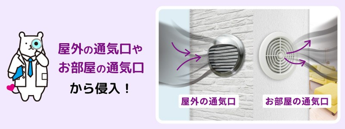 通気口をはじめ、キッチン・脱衣所・トイレ・浴室などに設置された換気扇からも、外気と一緒に花粉が侵入してきます。