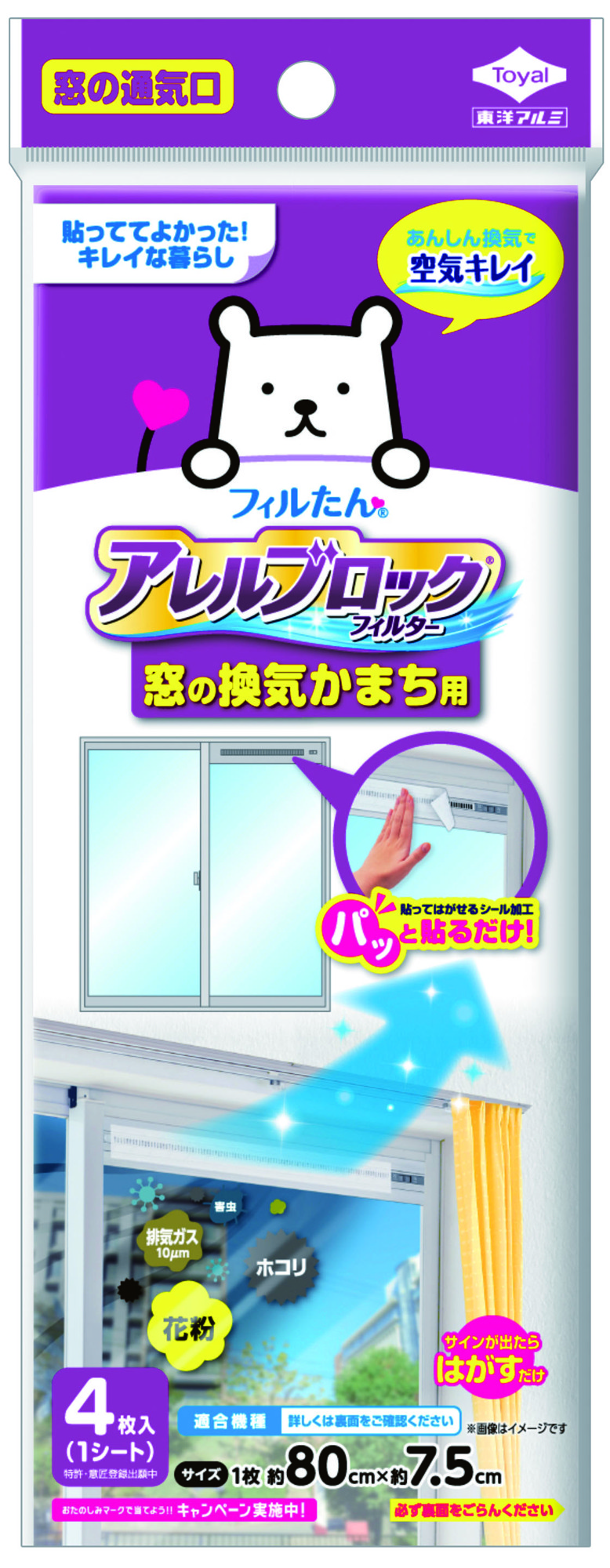 花粉を含むさまざまなアレル物質をキャッチし、通気口から室内に入る空気をフィルターで通すことで、花粉などの侵入を物理的にブロックします。