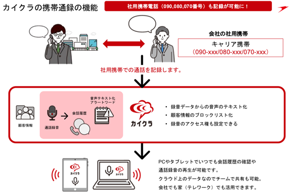 携帯電話での顧客対応が増加する中、従来の固定電話に依存した録音体制だけでは、すべての顧客接点をカバーできないという課題が浮き彫りになっています。「カイクラ携帯通録サービス」は、こうした「対応漏れ」や「対応品質の不均一化」を防ぎ、すべての会話を「資産」として活用できる環境を提供します。
