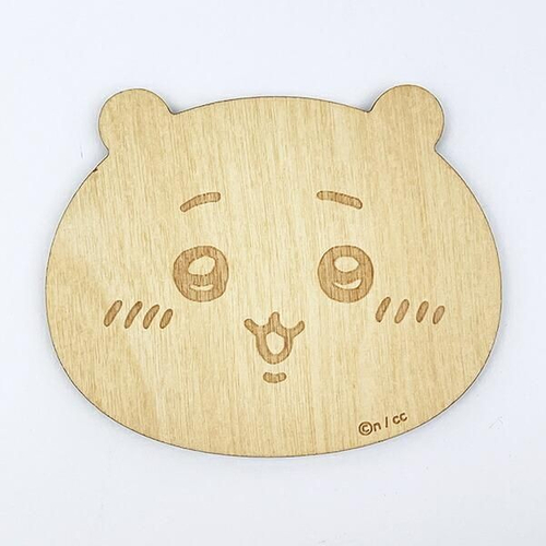 ちいかわのフェイス型の木製のコースターは、木のあたたかみとちいかわの笑顔のダブルで癒しをお届けします。