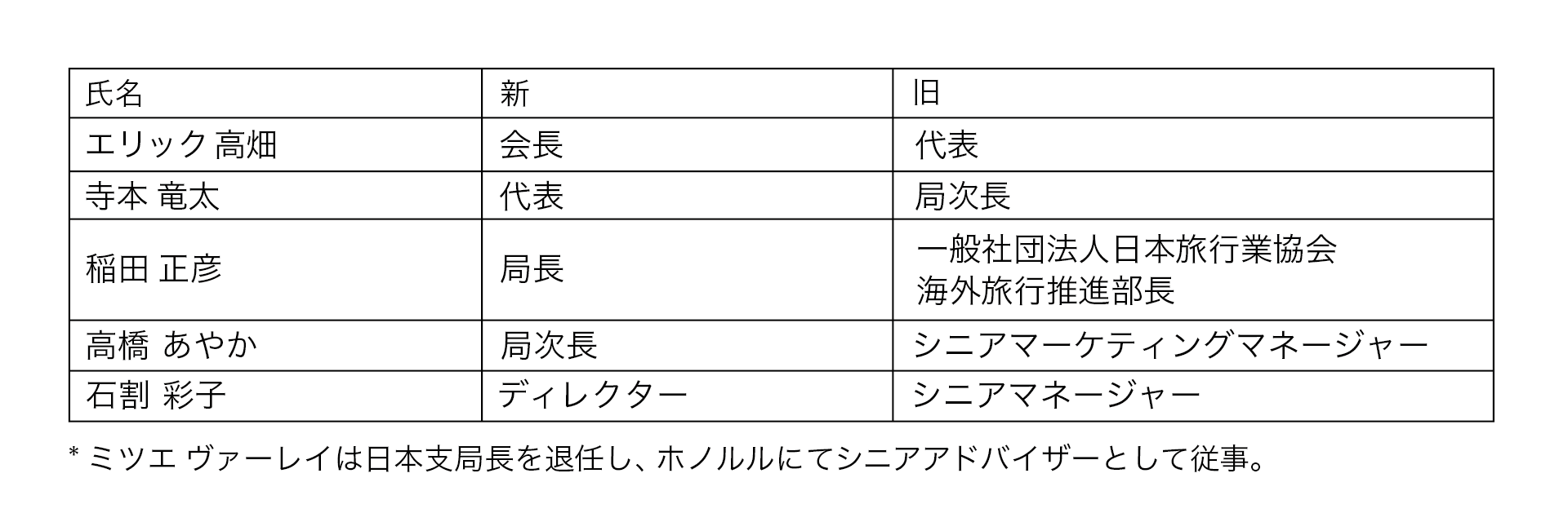 人事変更があった主要メンバーの役職は以下の通りです。
