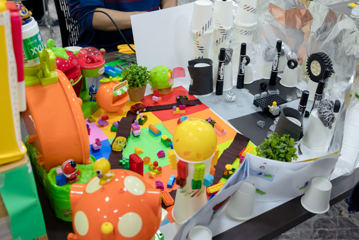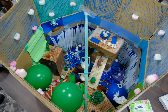 第一部では、テクノロジーとは正反対のワークショップとなる、ガラクタのおもちゃでミニな世界を作る「チーム対抗!みんなで作ろうMiniverse」を実施しました。LEGOブロックやガラクタのおもちゃを使ってアナログなメタバース空間を作り、VRカメラを使用してどんな世界観を構築したかをチーム対抗で競い合い、その過程において、各々がリーダーシップを育むことを狙いとしています。