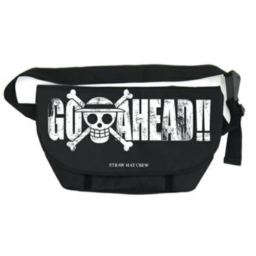 GO AHEAD!!の文字とドクロが大胆にデザインされたメッセンジャーバッグです。サイズは縦27cm×横48cmと大きめ!雑誌やノートパソコンも入るから使い勝手がかなりいいですよ◎