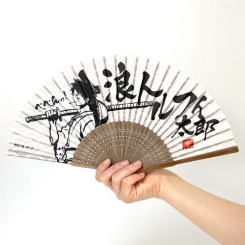 ワノ国 ルフィ太郎の扇子。ポリエステルの生地を使用した扇面と、竹でつくられた骨部分が特徴♪ルフィの場合は刀なんか必要ない気がします。