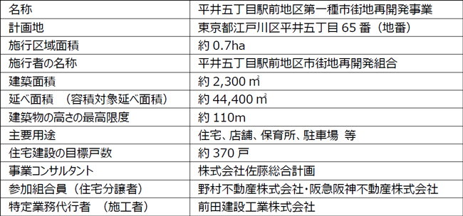 野村不動産株式会社(本社:東京都新宿区/代表取締役社長:松尾 大作)と阪急阪神不動産株式会社(本社:大阪市北区/代表取締役社長:諸(※1)冨隆(※2)一)は、東京都江戸川区で推進しております「平井五丁目駅前地区第一種市街地再開発事業」(平井五丁目駅前地区市街地再開発組合 理事長:島村 佳孝)について新築工事が2021年3月23日に着工され、同年3月31日に起工式が行われましたので、お知らせいたします。
