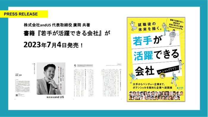 株式会社and US(富山県富山市、代表者:廣岡伸那)は、リスナーズ株式会社プロデュース、しゅんダイアリー監修による書籍『若手が活躍できる会社』に共著者として参画し、同著が2023年7月4日にAmazon.co.jpより発売されたことをお知らせいたします。