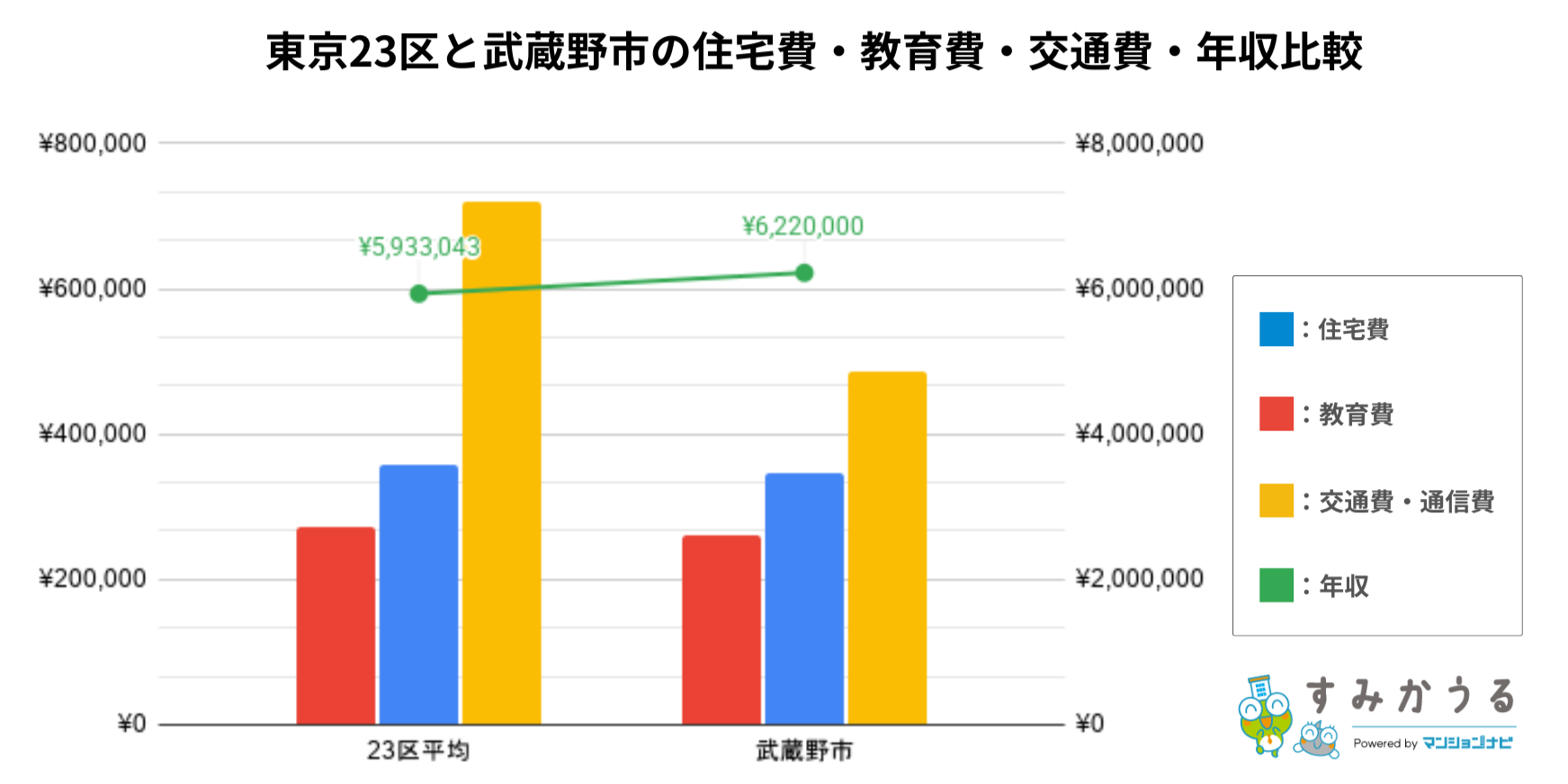東京23区との比較|家計データから見える武蔵野市の生活水準