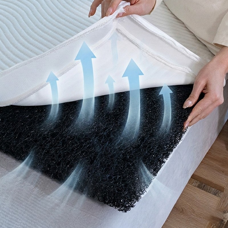 素材の約90%以上を空気の層で構成した、圧倒的な通気性が最大の特徴です。寝返りを打つたびにポンプのような役割を果たし、マットレス内部の熱気や湿気を効率よく排出。カビやダニが好む「温床」を作らせず、夏は涼しく冬はムレにくい、一年中さらりとした快適な睡眠温度を保ちます。