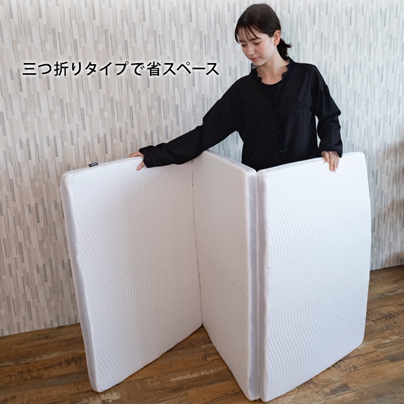 本商品は、植物のツタが「絡まり合う構造」を模したバイオミミクリー素材を採用。厚さ約5cmの強靭な3Dファイバー素材が、身体の沈み込みを根底から抑え、心地よい「バリ硬」な寝心地を実現します。三つ折り設計で収納場所を選ばず、限られた空間を有効活用できる点も大きな魅力。シャワーでの丸洗いも可能で立て掛けて干せる機動力に優れた一台です。