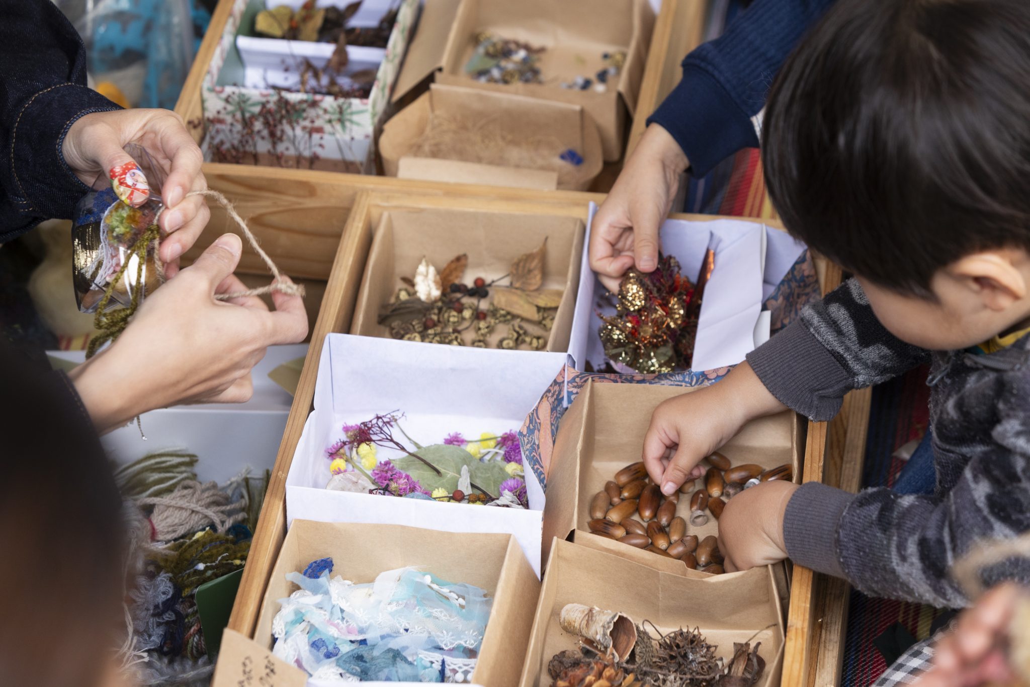 暖かい秋晴れのなか、府中の彩り豊かなお店が並び、ワークショップやプレイエリアも登場!