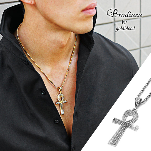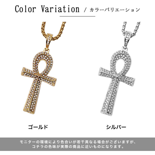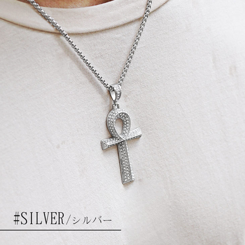 古代エジプトで用いられた、生命を象徴する輪付き型の十字架であるアンクをチャームに用いたネックレスで、やや大ぶりなチャームに仕上げることで存在感を発揮。