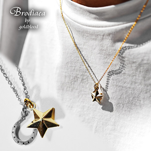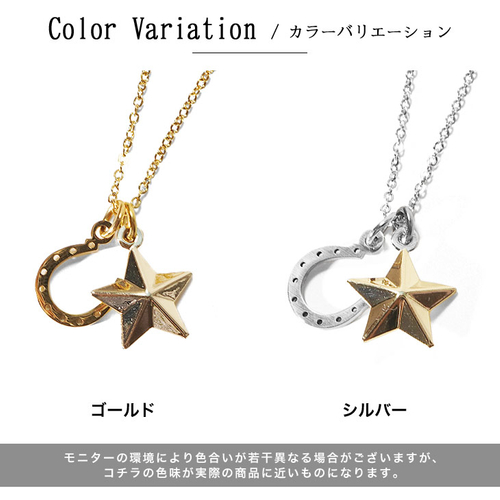 ホースシューとスターのチャームが、親しみやすく胸元を彩る逸品。