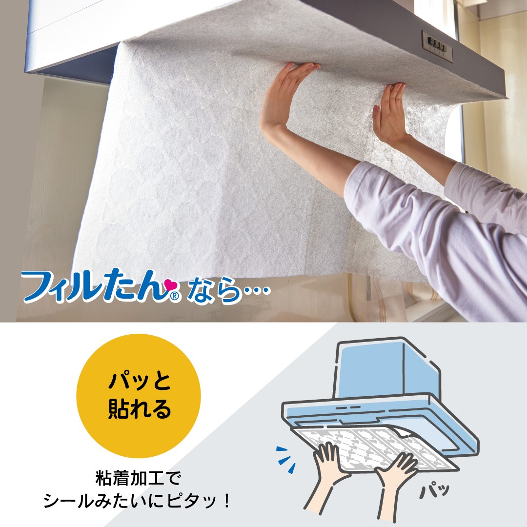 整流板に“パッと貼るだけ”で油汚れを予防!フィルたん(R)の整流板タイプ用フィルターに新カラーが登場