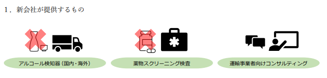 アルコール検知器(国内・海外)・薬物スクリーニング検査・運輸事業者向けコンサルティングのメイン事業で運輸事業者様の安全構築に貢献します。