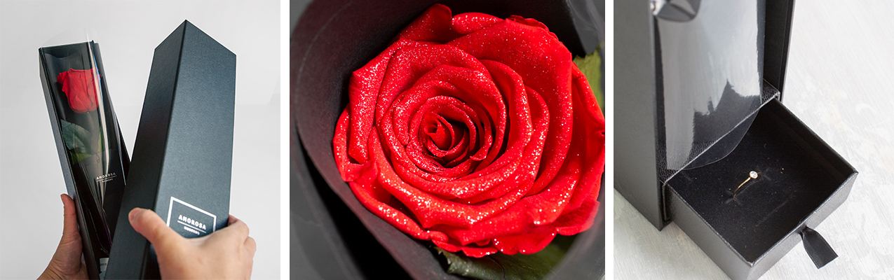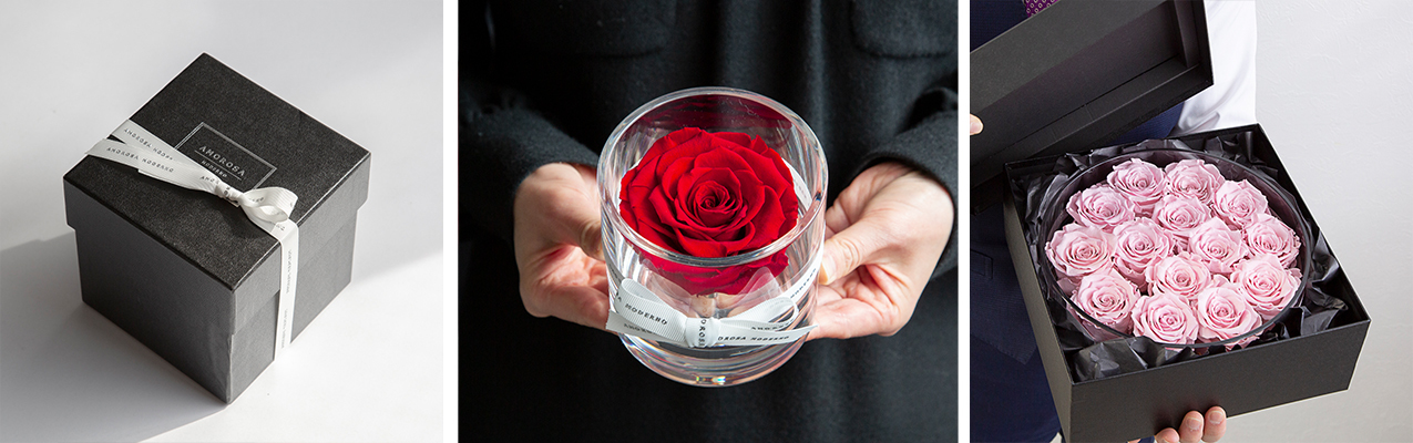 AMOROSA MODERNOは、南米アンデスの専用薔薇園で育成された「プリザーブドローズの女王」と呼ばれるバラを使用したローズギフトブランド。