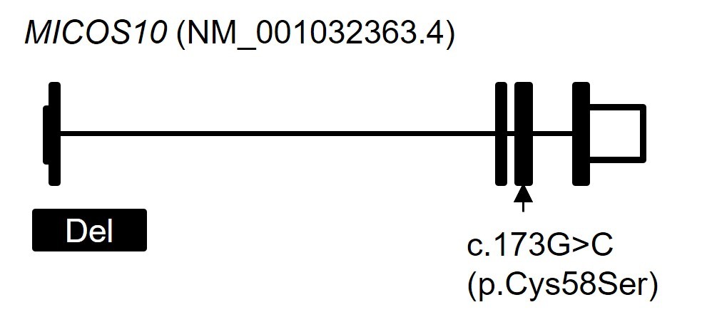以上より、神経-肝型ミトコンドリアDNA枯渇症の新規の原因遺伝としてMICOS10 遺伝子異常を特定することができました。