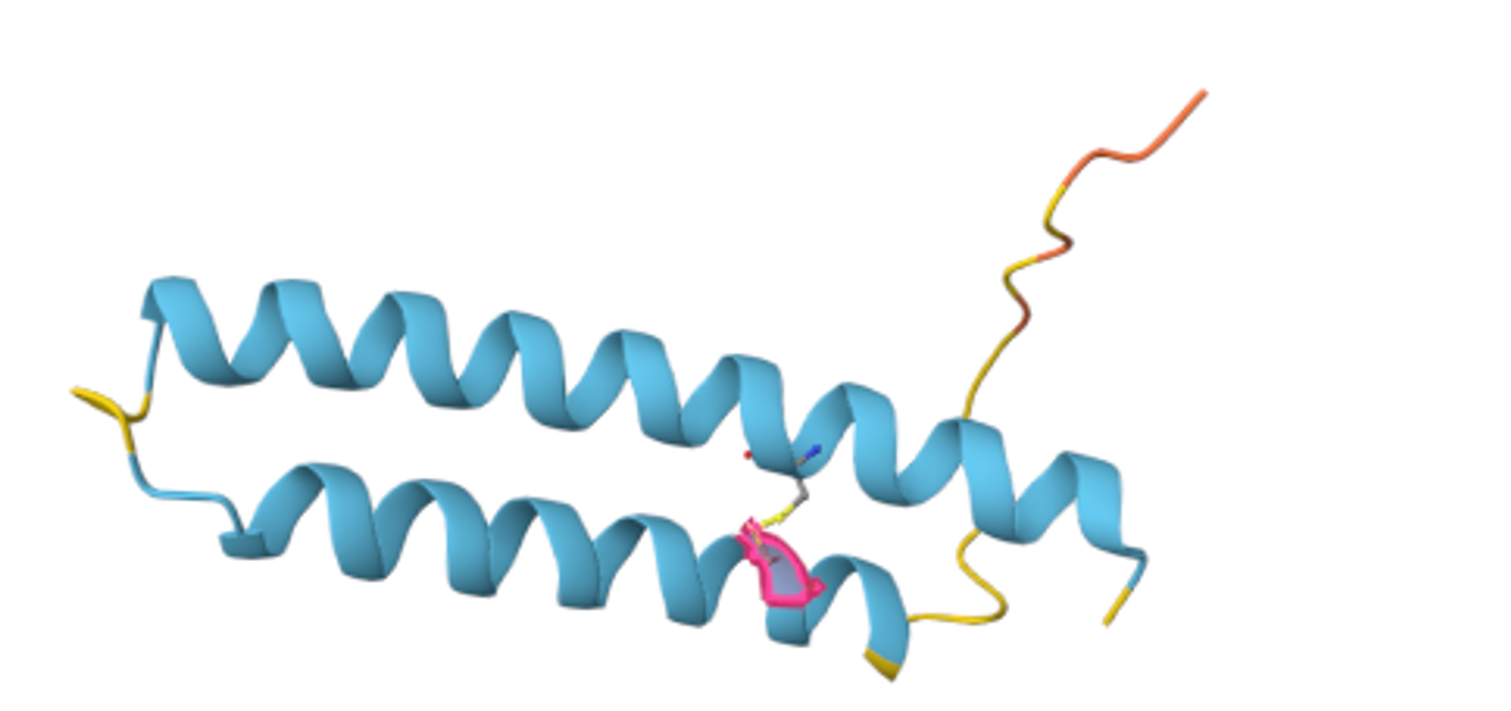 今回、ミトコンドリア病の未解決症例を対象として、全ゲノム解析およびRNAシークエンスを行いました。対象となる症例は肝臓と神経に主な症状を呈し、肝臓においてミトコンドリアDNA量の低下が観察され、ミトコンドリアDNA枯渇症と診断されていました。従来のゲノム解析方法である全エクソーム解析を用いて原因探索を行いましたが、原因となる遺伝子異常を見つけることができませんでした。全ゲノム解析を行うことで、MICOS10 遺伝子にヘテロ接合のc.173G>C(p.Cys58Ser)の遺伝子異常を見出しました。AlphaFold2*4 の予測によって、このアミノ酸残基は立体構造形成に重要であるジスルフィド結合を担うものであることがわかりました(図1)。また、エクソン1を巻き込む4.6k塩基対ほどの欠失を有することも明らかにしました(図2)。RNAシークエンスのデータから、エクソン1を欠失している染色体からはMICOS10 遺伝子のmRNAが発現していないことを明らかにしました。つまり、c.173G>Cが存在する染色体からしか、MICOS10 遺伝子のmRNAが発現しておらず、そのmRNAの翻訳産物はp.Cys58Serの変化により、タンパク質機能が損なわれていると考えられました。