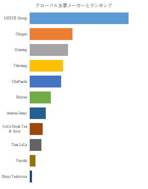 LP Informationのトップ企業研究センターによると、淹れたてティーの世界的な主要製造業者には、MIXUE Group、Chagee、Guming、Yihetang、ChaPanda、Heytea、CoCo Fresh Tea & Juice、Auntea Jenny、Tian LaLa、Nayukiなどが含まれている。2025年、世界のトップ5企業は売上の観点から約21.0%、トップ10企業は約26.0%の市場シェアを持っていた。淹れたてティー分野では複数の有力ブランドが存在し、売上上位企業による一定の集中度が形成されている。一方で、上位企業が市場の過半を完全に支配する構造には至っておらず、ブランド力、出店戦略、商品設計の差異が競争優位を左右している。主要企業は共通して、原料調達の安定化、店舗オペレーションの標準化、ブランド世界観の統一に注力しており、単なる店舗数拡大ではなく、長期的な顧客関係の構築を重視する姿勢が見られる。この分野の競争は価格ではなく、体験設計と運営効率の完成度を軸に展開されている。