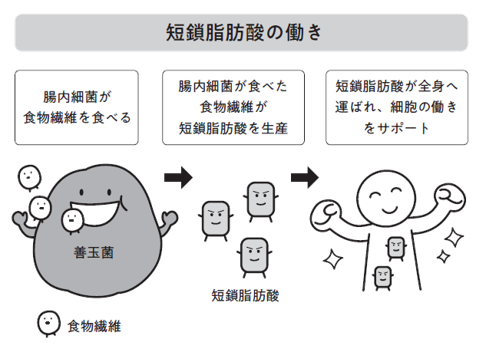 野菜や果物、海藻、豆類、穀物などに含まれる食物繊維は、血糖値を安定させる役割を持っています。特に水溶性の食物繊維は糖の吸収をゆるやかにし、食後血糖の急上昇を防いでくれます。食物繊維は、糖尿病の進行を防ぐうえでとても頼もしい存在となる「短鎖脂肪酸」を生み出す腸内細菌のエサになります。