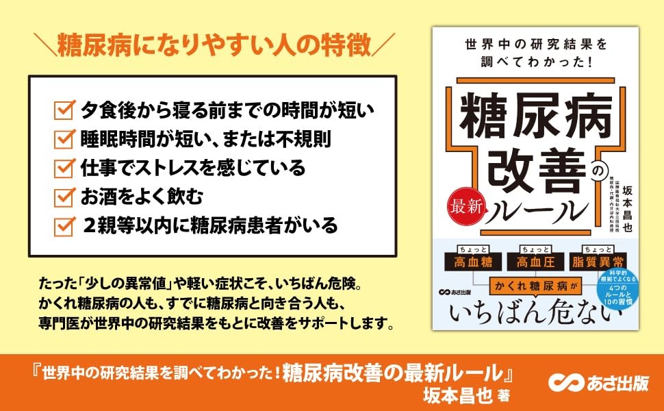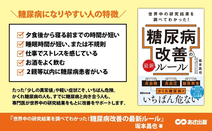 株式会社あさ出版(代表取締役:田賀井弘毅、所在地:東京都豊島区)は、坂本昌也 著世界中の研究結果を調べてわかった!糖尿病改善の最新ルール』https://www.asa21.com/book/b668224.htmlを2025年12月9日(火)に発刊いたします。