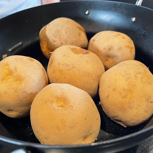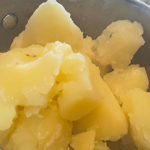 グラタンのベースはマカロニではなくて、じゃがいもタイプ。ボイルしたじゃがいをつぶしてバターで合わせた粗挽きが評判です。
